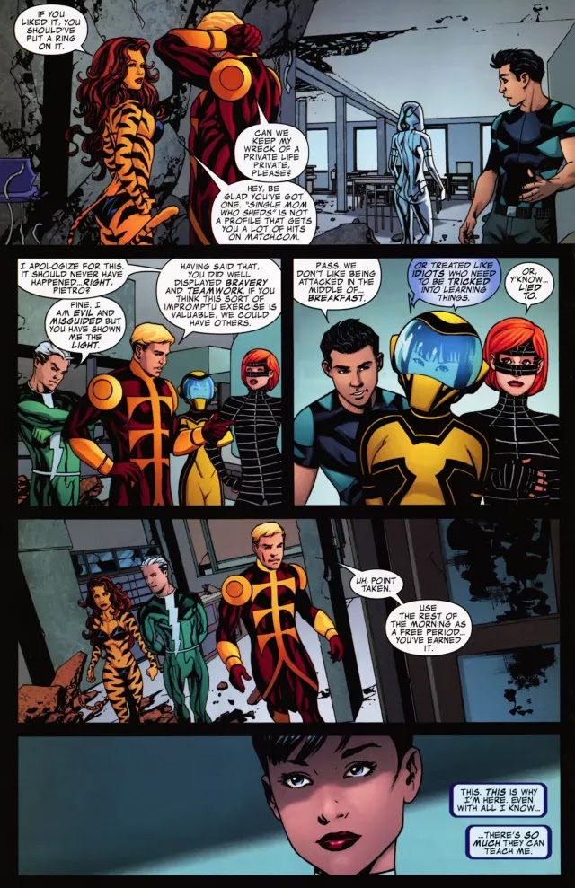 Quicksilver, Hank Pym, Justice, Tigra and Speedball are here to mentor the next generation of Earth's Mightiest Heroes...but is one of the students hot for teacher? Plus: Get a glimpse inside the mind of Finesse!